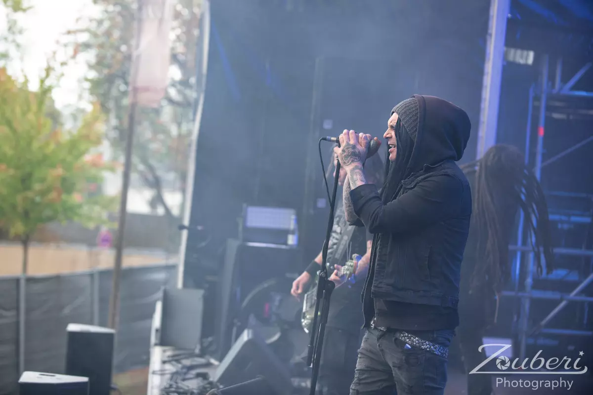 Right after lunch time, TANZT! started out with Remember Twilight – a quite unique folk metal experience, since the band’s sound profits from two violins. They began slowly, with some ballads, later their show got more and more rocky. For the fourth song, a special guest, the singer of Tales Of Nebelheym, was recruited to perform a “Hallelujah”.